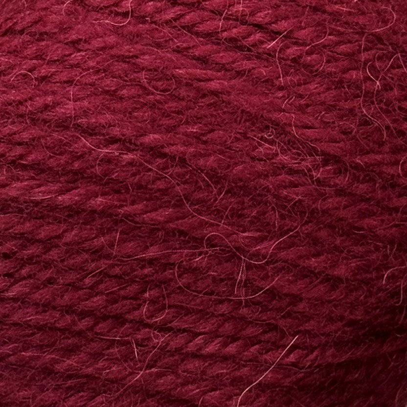 Aella 8ply in shade 1456 Burgundy. Aella is a gorgeous brushed Alpaca Merino wool blend, consisting of 30% New Zealand Alpaca wool and 70% Australian Merino wool. It comes in a 50g donut with an average length of 100m. We recommend 4mm knitting needles.